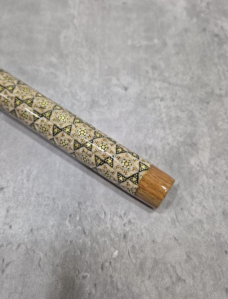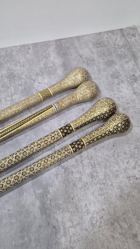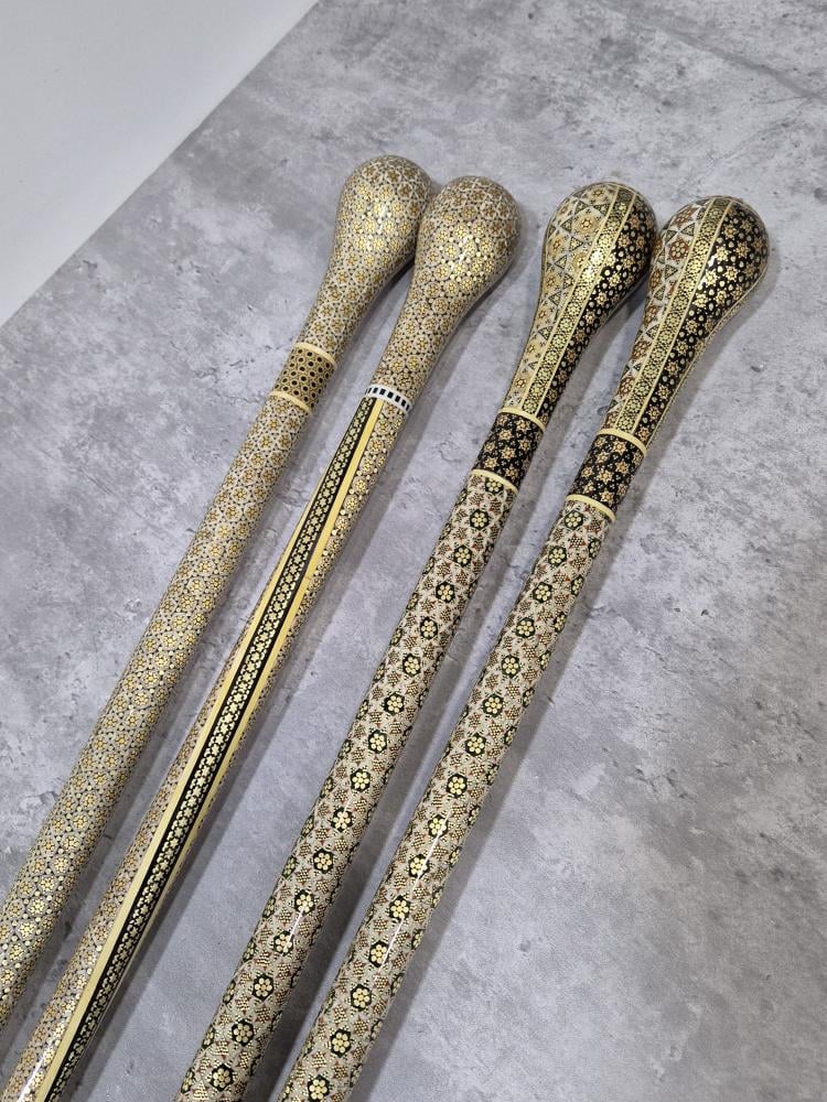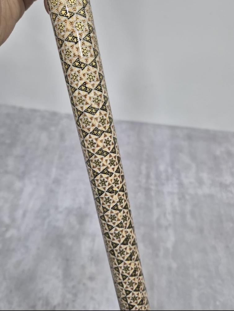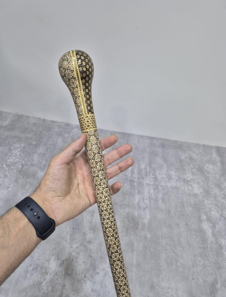 امتلك قطعة من التاريخ والفن مع صولجان الفخامة، المصنوع يدويًا بإتقان استثنائي. يتميز بتطعيم فاخر من العاج والنحاس، حيث تتناغم الزخارف الهندسية الدقيقة مع لمسات الذهب الفاخرة، مما يجعله رمزًا للأصالة والرقي.