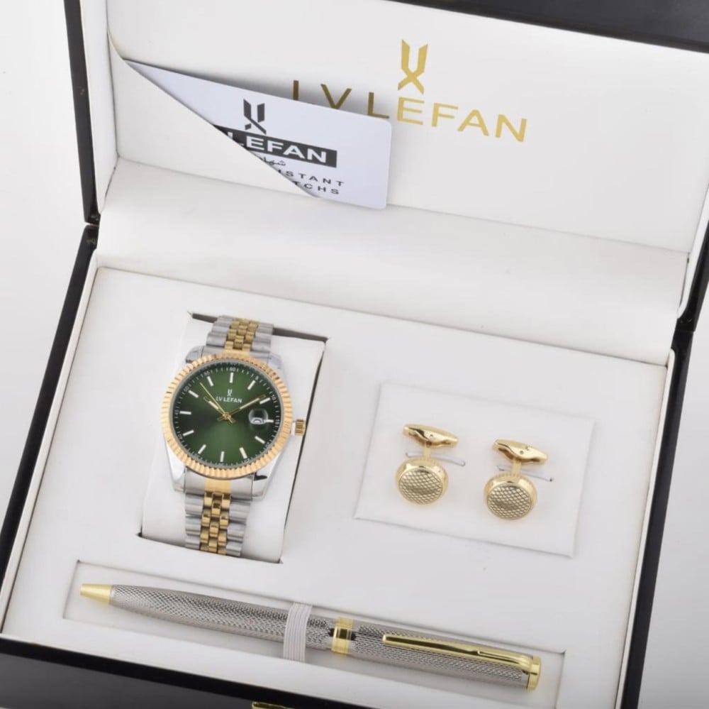 اطقم رجاليه بوكس جلد ساعه وكبك وقلم